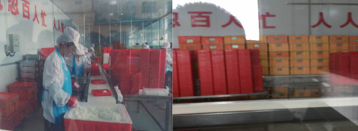 参观山东荣成马大哈营养餐饮有限公司装餐流水线